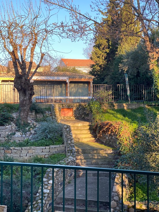 och mossan i trappan upp till den övre delen av trädgården?