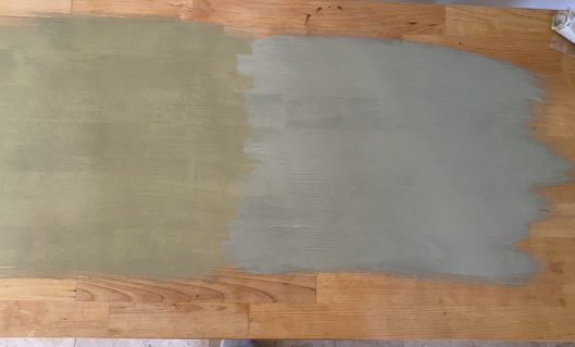 Jag är otålig nu. Vill att det skall bli klart. Jag har provmålat med två grönfärger till skåpsluckorna och hittills fastnat för den till höger: