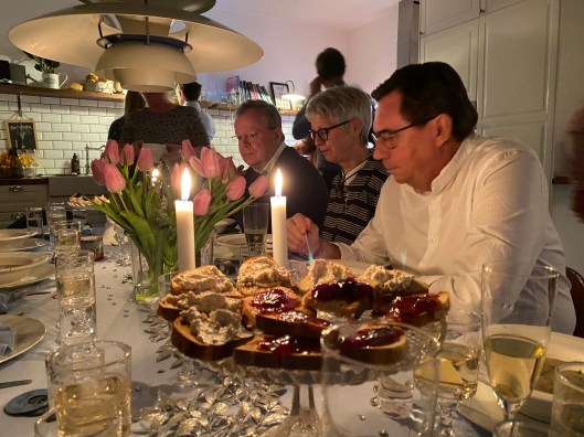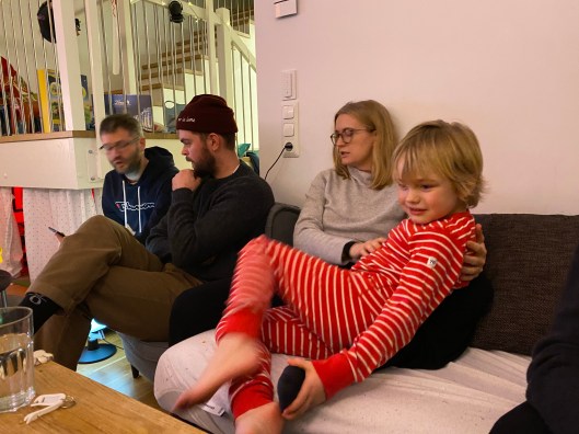Resten av huset var stilla. Vi åt saffranspannkakor i den gemenskap som är bara min och Bertils och som är så alldeles väldigt speciell. Så kom Bror och resten av huset och julaftonen snurrade igång.