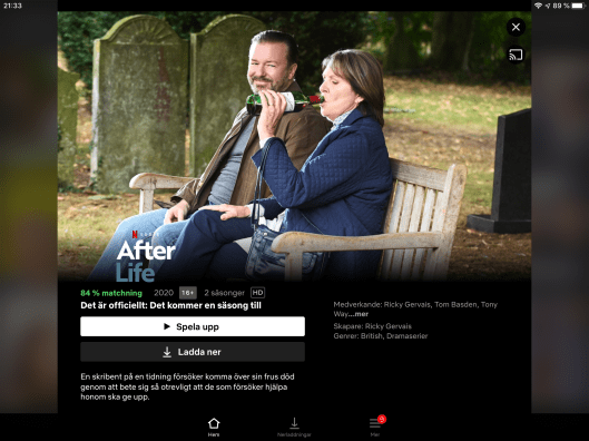 Såg just första avsnittet av After Life med Ricky Gervais som deliciöst grumpy, otrevlig och deppig änkeman på Netflix