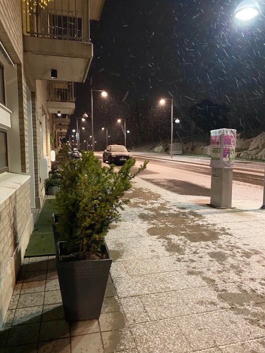 Johanna har skjutsats till ännu ett nattpass hos covidpatienterna. Vi spelade julmusik i bilen och förde allvarsamma samtal när försiktiga snöflingor i tilltagande mängd började dansa framför bilens strålkastare.