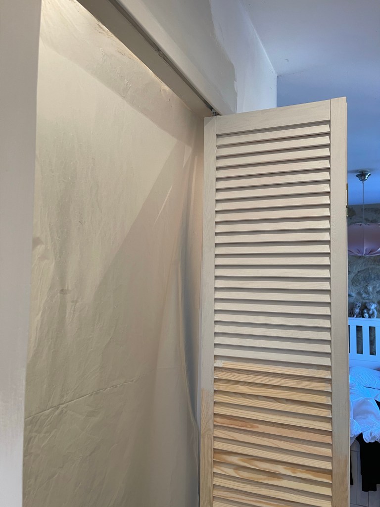 Annat är det med Tom! På en och en halv vecka har han fått dörrkarm, dörr, garderobsdörr och anpassningar gjorda och jag behövde bara måla, städa och fixa till lull-lullet.