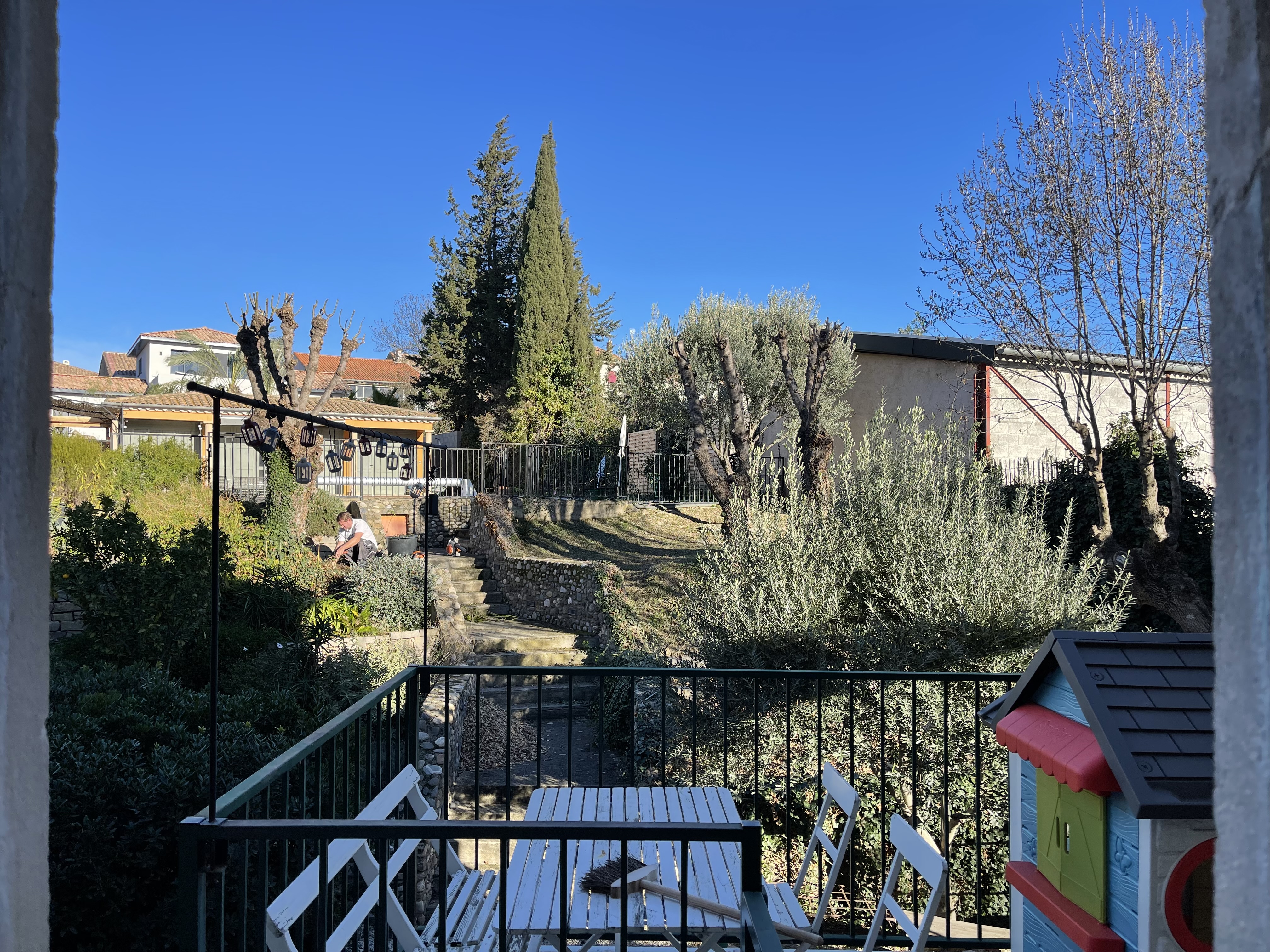 Tanken är att några uthyrningsveckor skall få bekosta det. Fast det där funderar vi inte på just nu. Jag har varit tillbaka i Sverige en kort sväng. Som kallast var det -27 grader. När jag åkte tidigt i måndags morse regnade det och var nollgradigt. Men i Murviel har vindarna vänt, ylle lagts åt sidan och kortärmat letats fram.