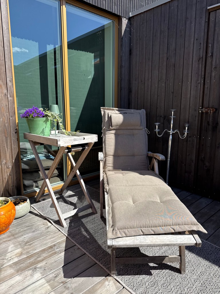 Under mina gå-runt-och-skrota-sessioner de senaste veckorna har vår utemiljö fått betydligt mer andakt än inomhusmiljön. Vi har röjt, skrubbat, rensat ogräs, pimpat och sedan njutit i solen. Jag har ätit sena frukostar under parasoll, stickat hiskeliga barntröjor i regnbågsgarn och lyssnat på både ljudböcker och poddar.