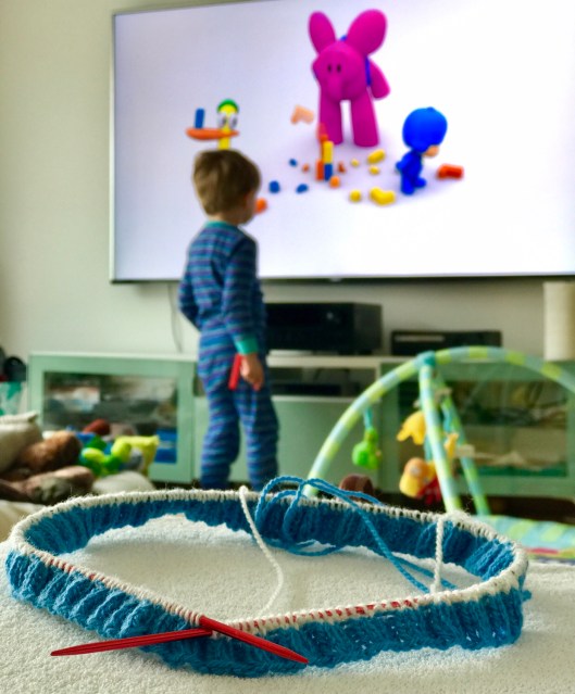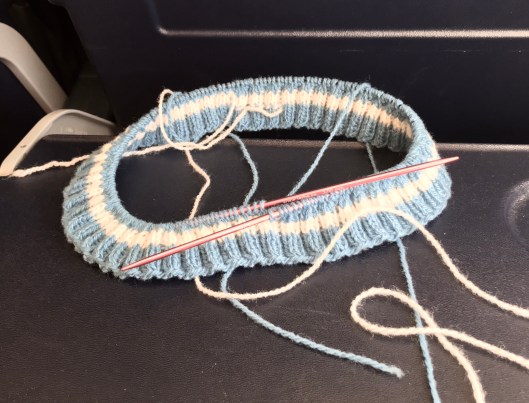 Istället står jag där och tittar ner i väskan, får ner sagotröjsprojektet, datorn och min iPad och när jag lyfter den, inser jag att den nog blivit i tyngsta laget. Det brukar bli så, eftersom jag tycker att det är så tråkigt att packa och därför tycker att det är en sysselsättning som endast får inkräkta på min dyrbara tid med högst en halvtimme. Och det oavsett hur mycket planering som egentligen krävs för att sådant som behöver få följa med också hamnar där i väskan.