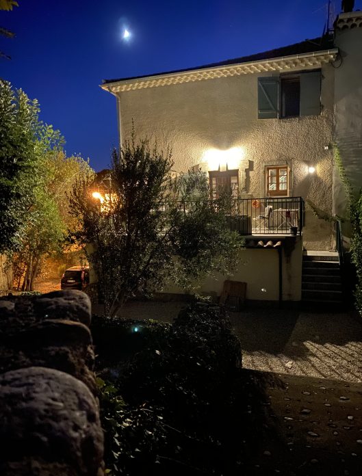 Våra fönsterrenoverare kom också förbi och tillsammans traskade vi upp till Le Café Nouvel. Några dagar senare och sedan jycken och jag blivit ensamma i huset, hämtades vi till en mysig middag i St Nazaire. I nathorstarnas hus händer det saker minsann och deras vardagsrum har fått en väldigt speciell känsla; som att kliva in i en filmscen…