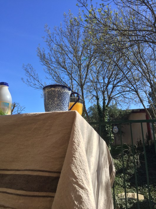… du nyduschad och med tankarna på annat håll blir uppringd av maireriet och tvingas finna dig och med uppbådande av all kraft och koncentration lyckas ta dig igenom ett samtal på smattrande franska om byte av vattenmätare, om en räkning som skickats till vår gamla sverigeadress och som de undrar om de kan lägga i vår låda här i Murviel och för att boka tid när jag är på plats. Att med duschvattnet droppande kring fötterna upptäcka att du faktiskt förstår och kan svara någorlunda begripligt, om än trevande och fåordigt, eftersom ingen annan finns där som kan hjälpa till, är en trevlig upptäckt. Jag tycker ju nämligen annars att mina språkliga framsteg sker med snigelfart.